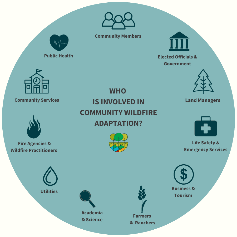 There is a role for everyone in fire adapted communities. From community members to businesses and utilities to land managers, we can all contribute to community wildfire adaptation.