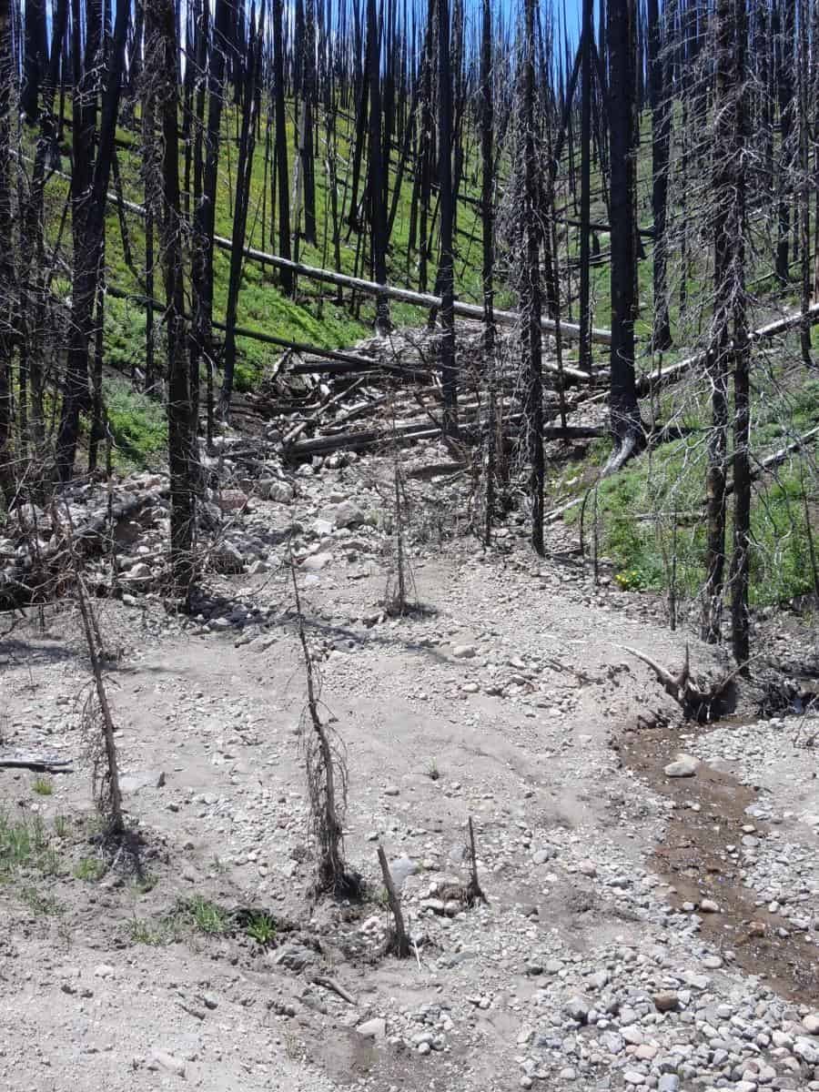 - A debris flow in the burn area. Photo Credit: Bill Trimarco